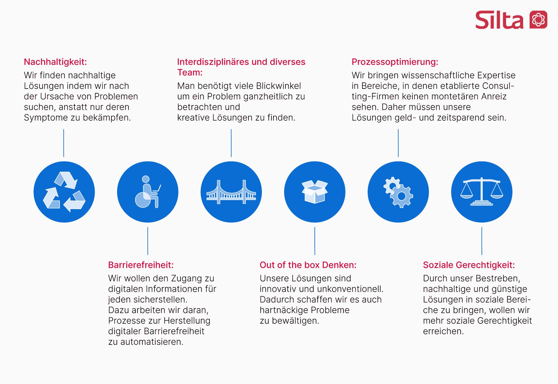 Jedes Unternehmen hat seine eigene Motivation und Ausgangspunkt. Bei mir war es der Wunsch, den Austausch zwischen verschiedenen Interessengruppen im sozialen Bereich der Digitalisierung sowie die Datenanalyse zu fördern. Unsere Werte bestimmen daher nicht nur unser Wachstum und unsere Ziele, sondern auch unseren Alltag.